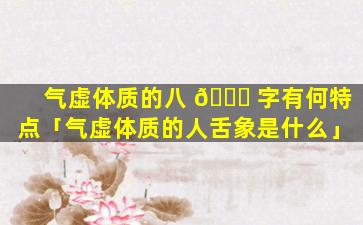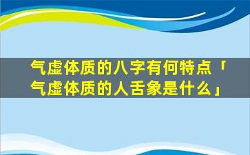 气虚 🐅 体质 🦄 八字特点
