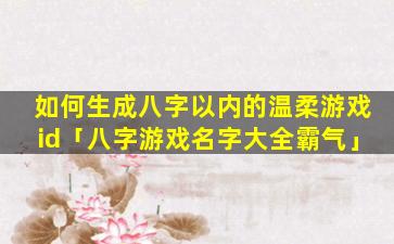 这些建议有助于生 🦈 成八字以内的温柔游戏id: