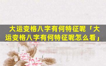 大运变格八字是指大运与原命局产生 🦁 质的变化,从而导致人生运 🦅 势发生重 ☘ 大转变的八字。其主要特征如下: