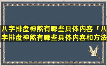 神煞是八字命理学中的特殊术语,指命中,存在的特殊影响 🍀 力分为吉神和凶神两类八字。排盘中常见的具体 🐛 神煞内容包括: