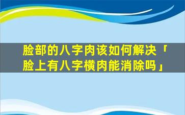吸脂术:将下巴下 🐱 方多余的脂肪抽出,减少八字横 💮 肉的体积。