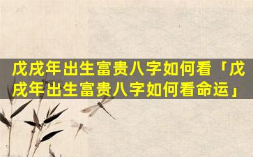 戊戌年生富 🌵 贵八字看财 🐈 运