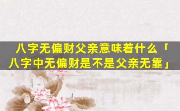 男命 🌼 八字无偏财 🌾 看父亲的方 ☘ 法: