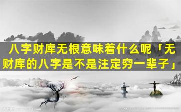 在 🌷 八字命 🐞 理学中,“财库无根”是指财 🐧 库所在的宫位(即辰戌丑未)没,有本气之根即没有相应的生肖地支出现。