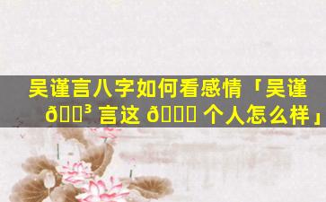 综合来看:吴谨 🌾 言八字偏旺,伤,官 🐱 旺,正官不显桃花多。这,表明她的感情运势比较复 🐬 杂容易出现以下情况: