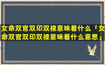 因此,女命双官双印双禄 🐋 意 🌻 味 🐵 着: