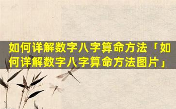 数字 🌷 八字算命 🦍 方 🐡 法详解