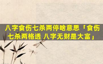 八字食伤 🌼 七杀两 ☘ 停的含 🌲 义