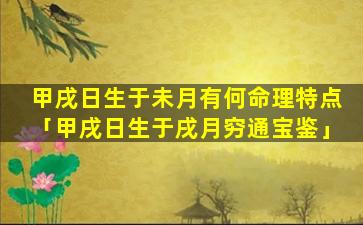 甲戌日生于未月命 🌴 理 🐠 特 🕊 点