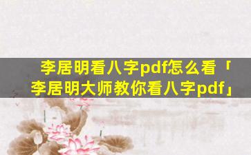 李居明看 🐘 八 🕊 字 PDF 解读指南 🐵