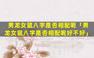 根据 🌺 中国传统生肖 🦋 配对文化,龙鼠相配属于“六合”之,一 🐱 代表着非常相配。