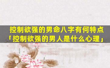 控制 🌺 欲强男 🐘 人的心理 🦁 因素: