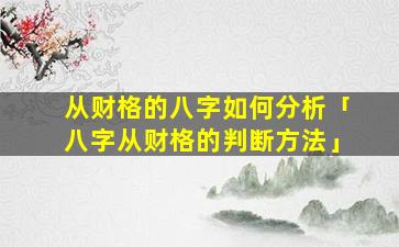 八 🐺 字从财格的判 🐵 断 🪴 方法