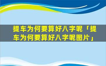提 🐞 车为何要算好 🌲 八 🦢 字?