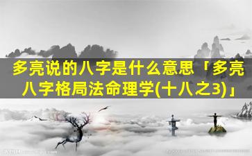 多亮八 🐘 字格局法命理 🍀 学 🐟 (十八之3)