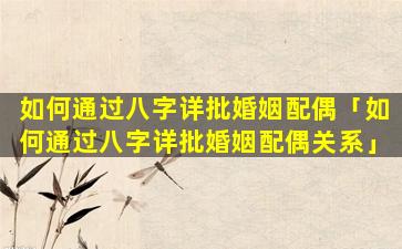 通 🐛 过八 🦆 字详批 🌷 婚姻配偶信息
