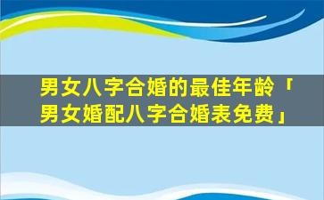 在传统命理学中 🪴 ,男 🌼 女八字合婚的最佳 🌻 年龄有如下说法: