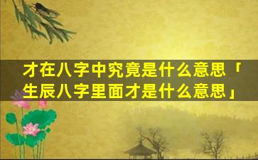 “八字有才字”是指 🐯 八字命理学中八,个“字”里含有才字。