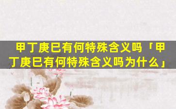 是的,甲 🐋 丁庚巳在传统文化中具有特殊含义 🐞 :