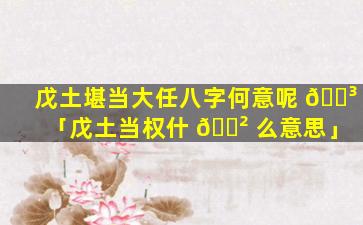 “戊土堪当大任”这句话通常用于八字命理学中用,来形容日主为戊土 🌿 的人具有以下特质: