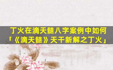 丁火在滴 🦉 天髓八字案例 🍀 中的表现