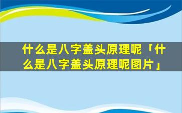 八字盖头原理是一个预测学中的概念,指八字中的,某 🐴 一,柱生旺而其他三柱虚弱或受克导致该 🦈 柱的五行旺气被遮掩。