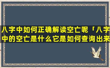 需要注意 🌷 的是,空,亡的吉凶并非绝对还需要结 🕸 合命局中其他因 🦊 素进行综合判断。