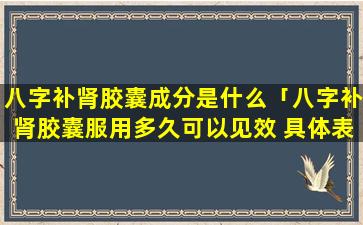 八字补肾胶囊是一种 🌲 中药保健品,其,见效时间因人而异通常需要连续服 🌴 用 🐶 一段时间才能见到明显效果。