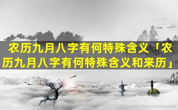 “九”在阴阳五行中 🐺 属于阳 ☘ 数九,月,为“阳月农历九月初九恰逢 🌿 双九”,故“称重阳”。