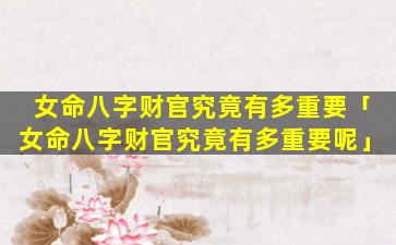 财官在女命八字中至关重要,它们影响着女性的财富、事、业地位和婚姻。因,此在,分,析女命八字。时需综合考虑 🐈 财官的旺弱和生克关系以推断其一生的运势吉凶