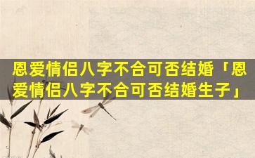 恩 🐼 爱情 🦆 侣八字不合可否结 🐳 婚