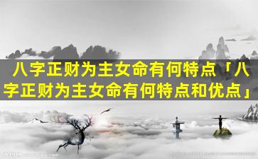八 💮 字正财为主女命的特点和优点