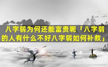 八字学中八字,弱,通常指日主过弱难以担负起食神、伤、官财星等克耗日主的十神。在,某,些特定情况下八字弱者依然可以获得富 🦄 贵主要原因如下: