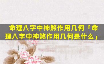 神 🐵 煞在八 🌵 字命理 🪴 中具有以下作用: