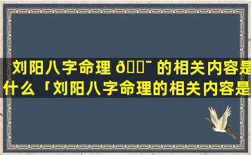 刘 🐅 阳八字 🐎 命理