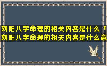 刘阳八 🕊 字命理的 🐯 解读