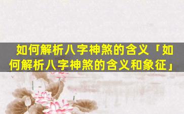 八字神 🐼 煞 🦈 的 🐬 含义和象征