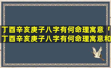 丁酉辛亥庚子八字命 ☘ 理寓意