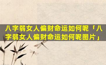 在八字命理学中,偏财代表意外之财偏、门、生意投资等。当,女。性八字中偏财弱时往往会影响其物 🌴 质财运和人际关系