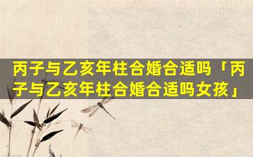 整体来看丙子与乙亥年柱合婚合适,地 🐺 ,支,相合预示双方婚姻基础稳固感情深厚。