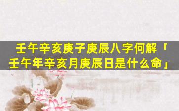 壬 🐴 午辛亥 💐 庚子庚辰八字解析