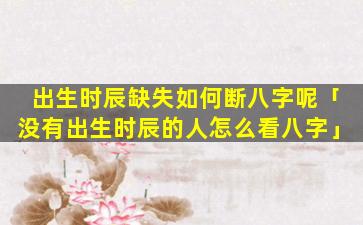 对于缺失时辰的八字 🦋 ,应,谨慎判 🌸 断不可妄下定论。