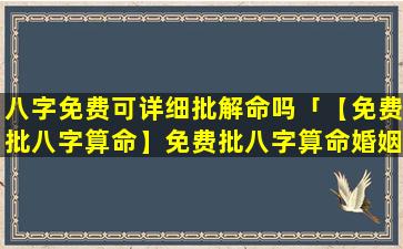 如何免费批八字算 🦢 命 🐘 婚姻?