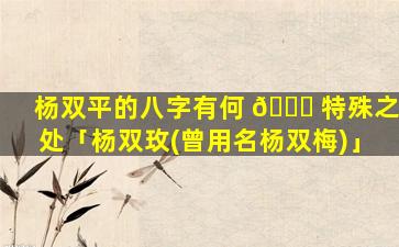 1990年代,杨双梅改名为杨双玫。近年,来,她活跃在电视剧领域在多部影视剧中出演 🐈 了母 🍀 亲、奶。奶等角色
