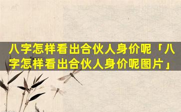 注意:以上方法仅供参考,具体合伙人的身价还需要综合分析八字的整体格局、五、行生 🦈 克神煞等因素来判断。