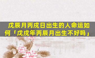 “戊戌年丙辰月”出生不一定不好 🦁 ,需要根据具体时辰、八字等因素综合判断: