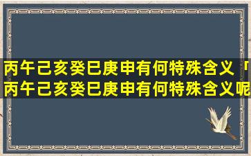 “丙午己亥癸巳庚申”是一组干支,在传统历法中具有 🐧 特殊的含 🌸 义: