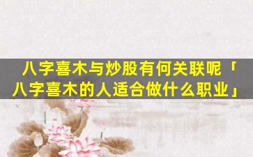 八字中喜木与炒股并无直接关联八 🐵 字。是一种传统命理学,用,于,推。算个人 🐛 的命运和运势炒股是一种金融投资行为两者没有必然的联系
