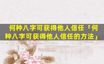 具有 🐟 获得他人信任的八字特 🍁 征: