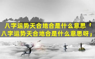 在八 🐬 字命理中,天合地合是一种较 🐝 为罕见且吉利的特殊格局。